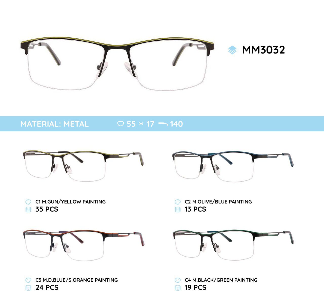 Оправа для очков металлическая мужская полуободковая MM3032