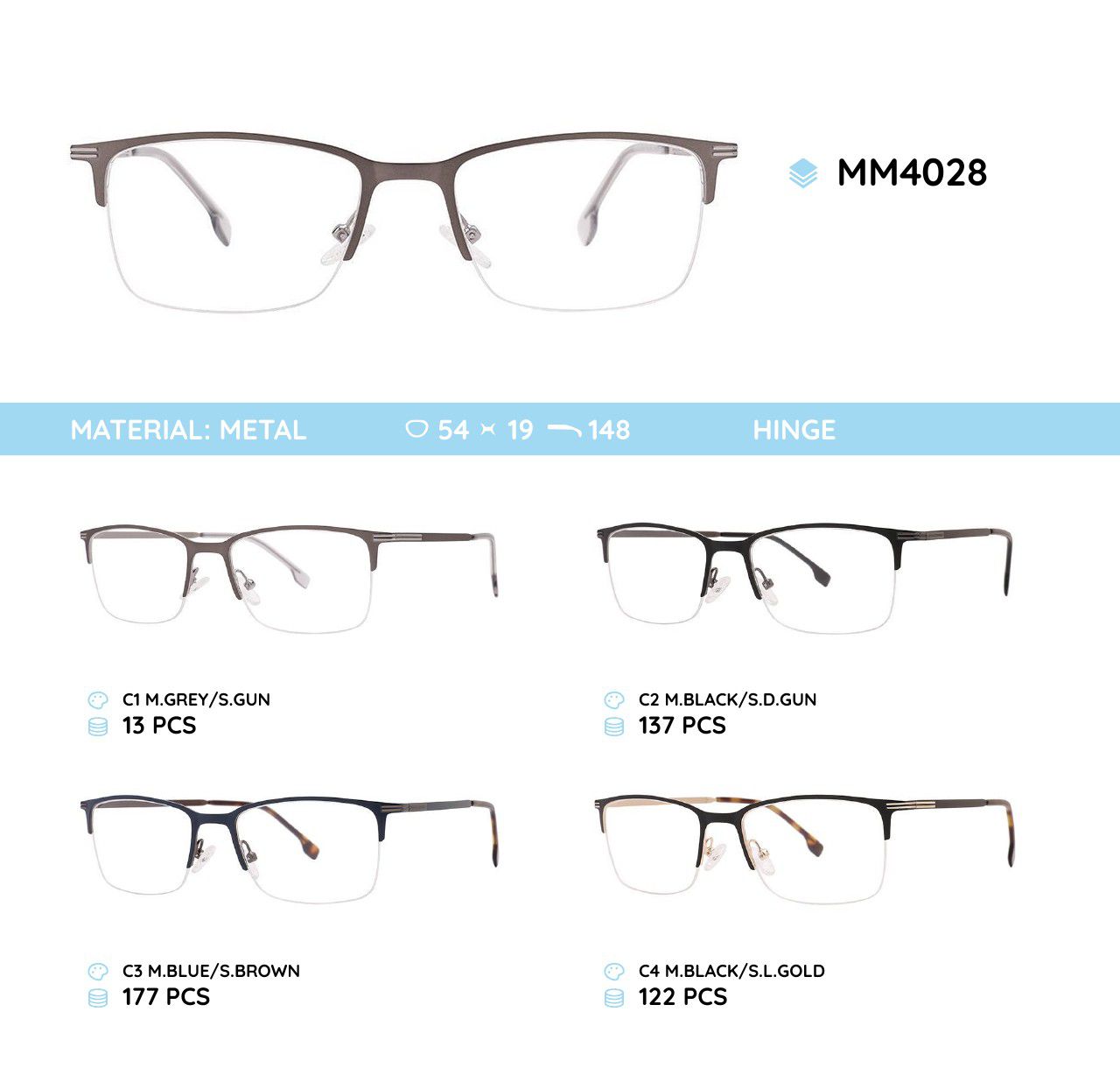 Оправа для очков металлическая мужская полуободковая MM4028