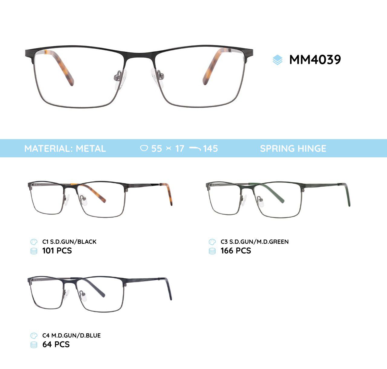 Оправа для очков металлическая мужская с флексом MM4039 MM4039-NV C1 - ¥ 43.45 В наличии