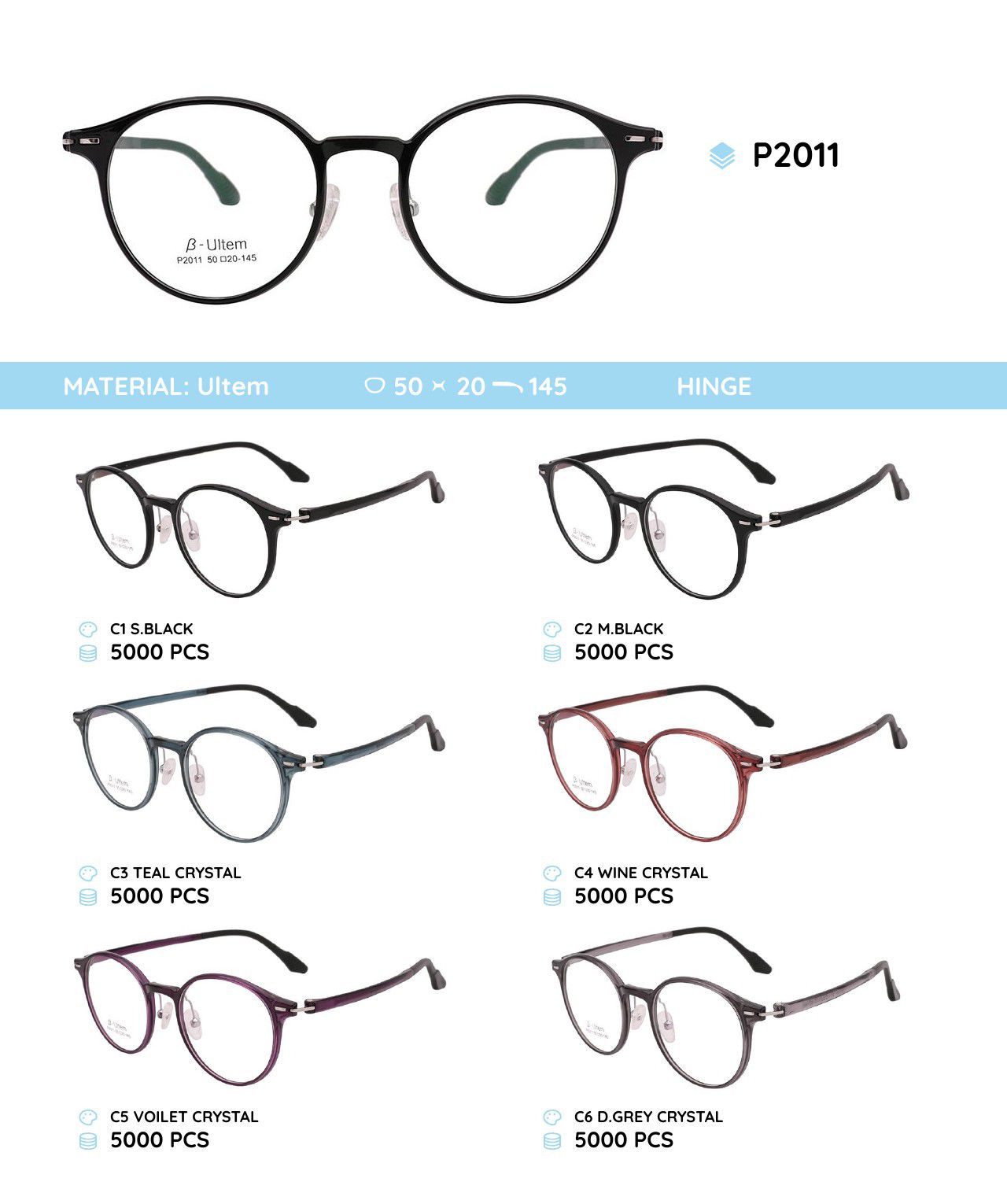 Оправа для очков пластиковая из материала Ultem P2011
