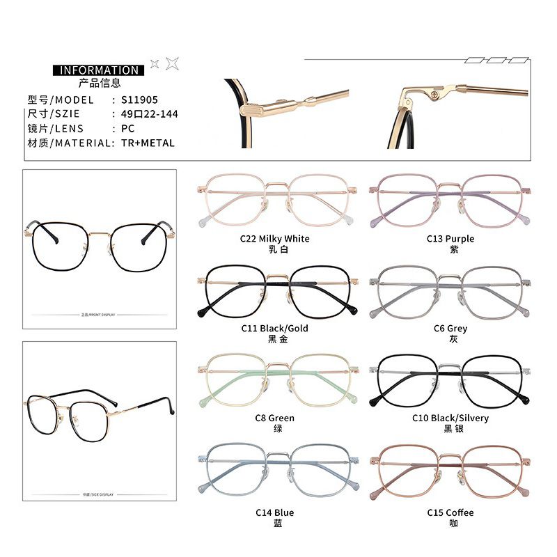- Материал оправы: металл + пластик TR90