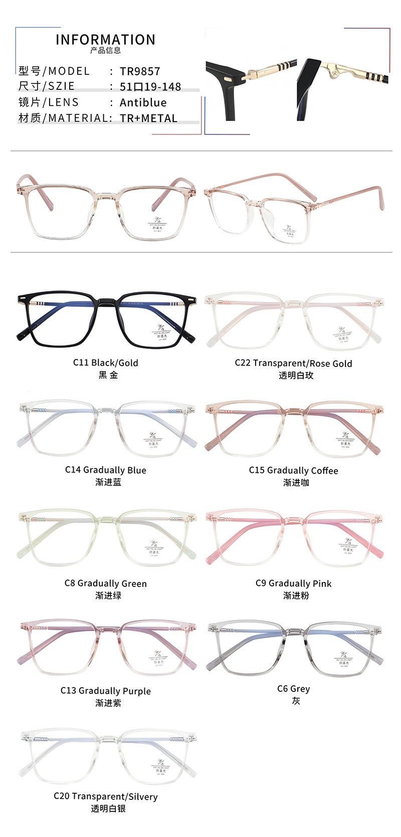 Оправа комбинированная с линзами Blue Ray Cut MAMO TR9857