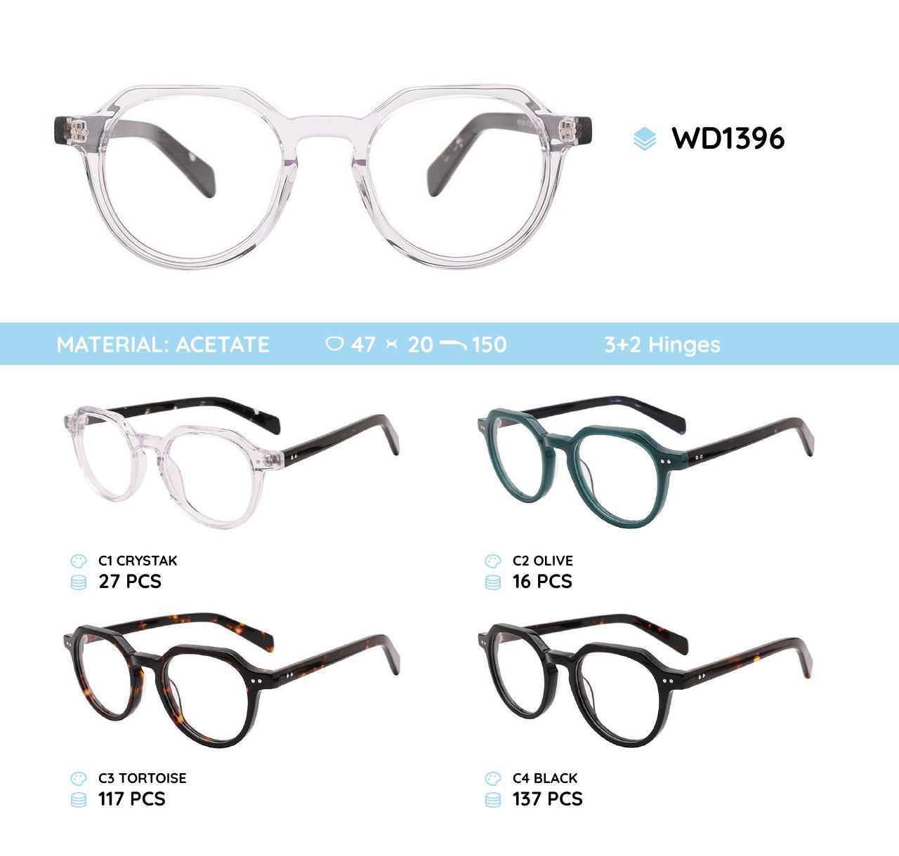 Оправа для очков женская пластиковая из материала ацетат WD1396