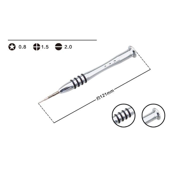 Отвертка для ремонта очков, длина 121 мм, Ø0.8/1.5/2.0