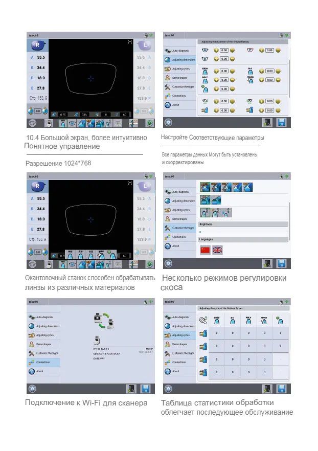- Применение: обточка и обработка любых типов очковых линз в автоматическом режиме.