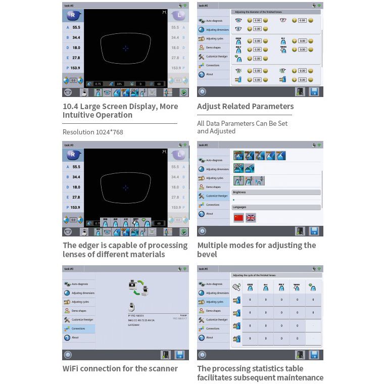 - Интеллектуальный режим обработки обнаружения, настраивающий линзу скорость резки в режиме реального времени зависит от толщины и твердости линзы, что обеспечивает безопасность осей;