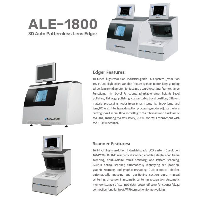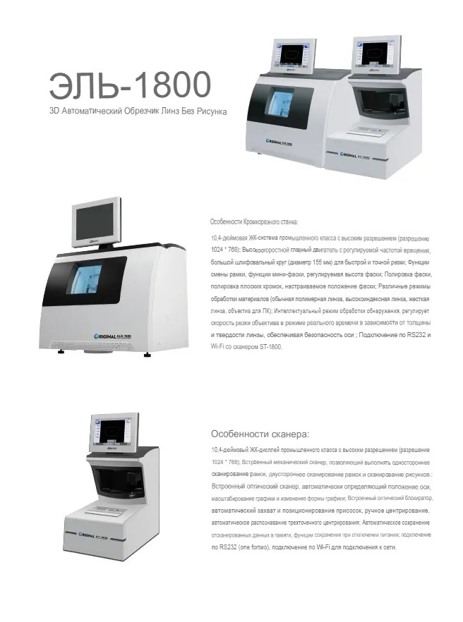 - сканирование: ALE-1200 и ALE-1600 - по копиру, шаблону, ALE-1800 - по шаблону и ободку оправы.