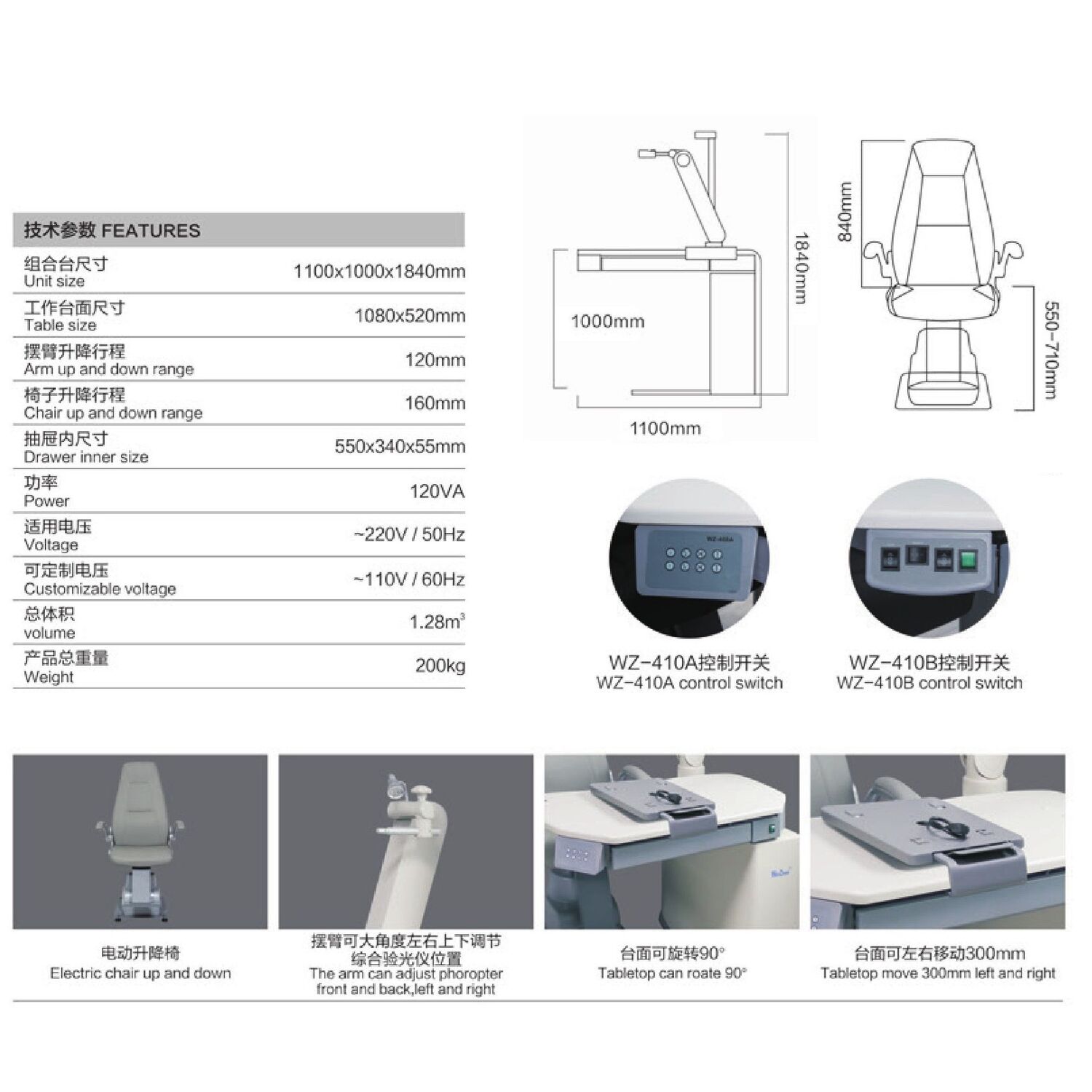 Рабочее место офтальмолога, комбинированный стол с кнопочным/сенсорным управлением + кресло WZ-410AB, столешница 1080*520 мм