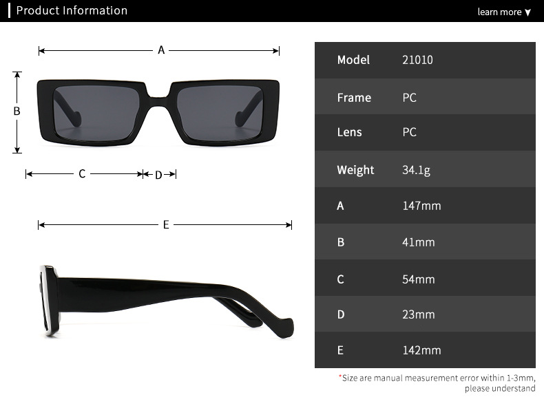 - Size: lens width - 54 mm, bridge distance - 23 mm, temple - 142 mm
