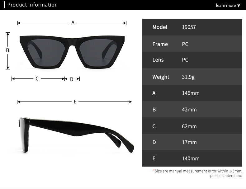 Sunglasses Elit retro cat eye 19057 19057 BLACK-BLACK-GREY/黑黑灰 mix ¥ 13.00 В наличии