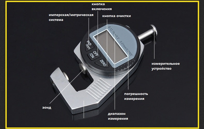 Данный измерительный инструмент применяется для определения толщины линзы. Измерительный наконечник имеет закруглённую или плоскую форму, что предотвращает повреждение линзы.