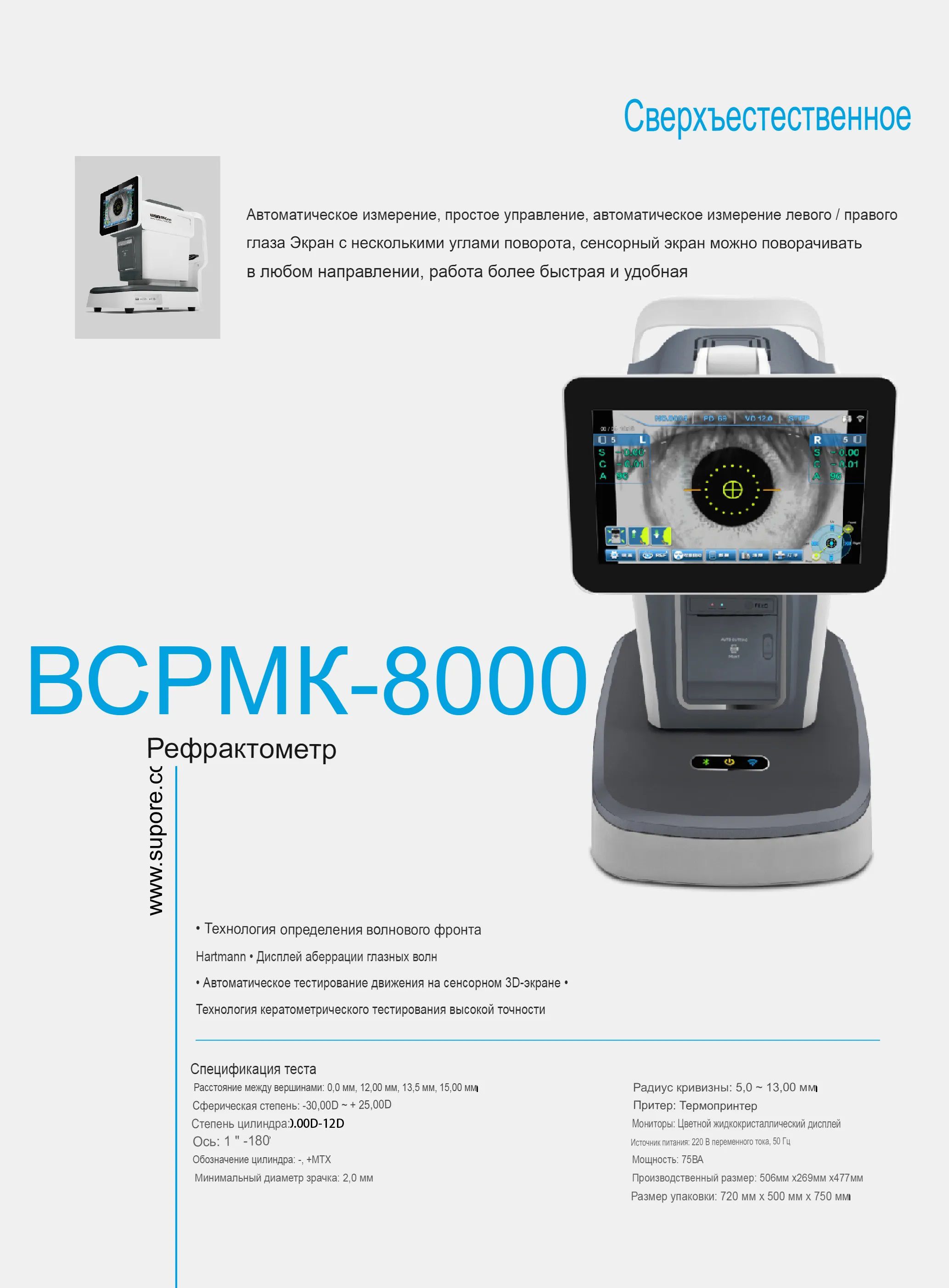 - Автоматическое измерение для левого и правого глаза