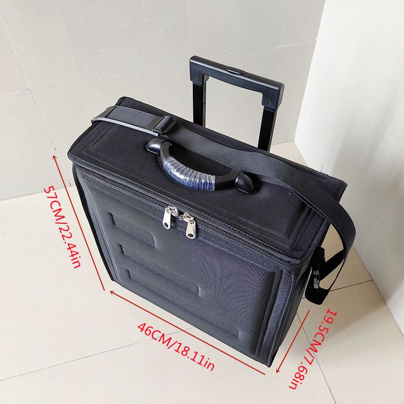Чемодан на колёсиках, с выдвижной ручкой. Удобен в транспортировке. Используется в салонах оптики, и выездными курьерами для перевозки и демонстрации очков и оправ. Подходит для деловых поездок, выставок и т.п.