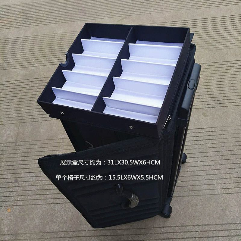 Trolley suitcase with retractable handle. Convenient to transport. Used in optical stores and by mobile couriers for transporting and demonstrating glasses and frames. Suitable for business trips, exhibitions, etc.