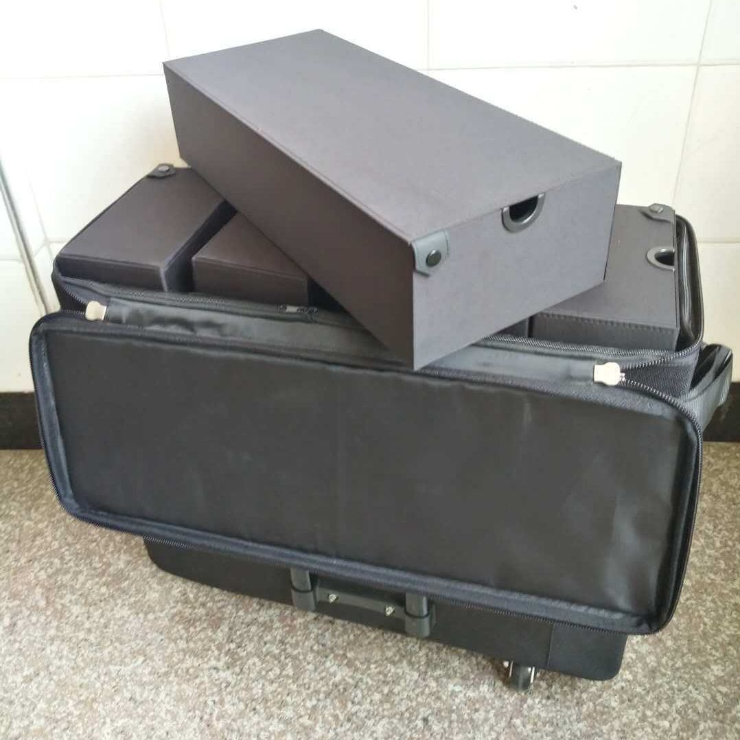 Trolley suitcase with retractable handle. Convenient to transport. Used in optical stores and by mobile couriers for transporting and demonstrating glasses and frames. Suitable for business trips, exhibitions, etc.