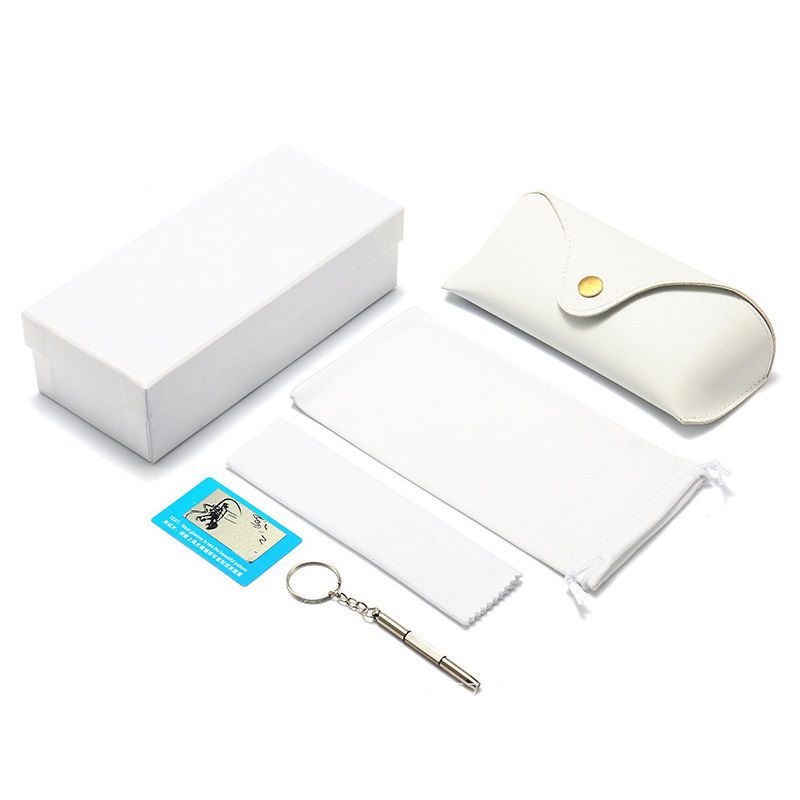 - Packaging: general plastic bag, includes packaging box, soft case, cloth for cleaning glasses, card and flashlight for blue light test