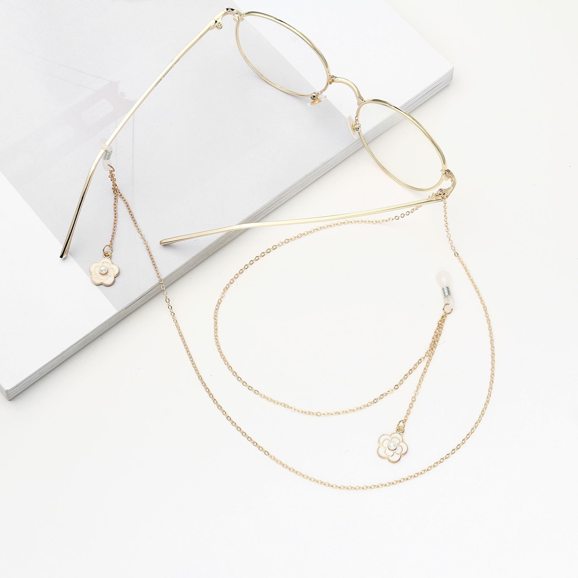 Gold-colored metal non-slip chain, with pendant flower, for glasses and masks GA017