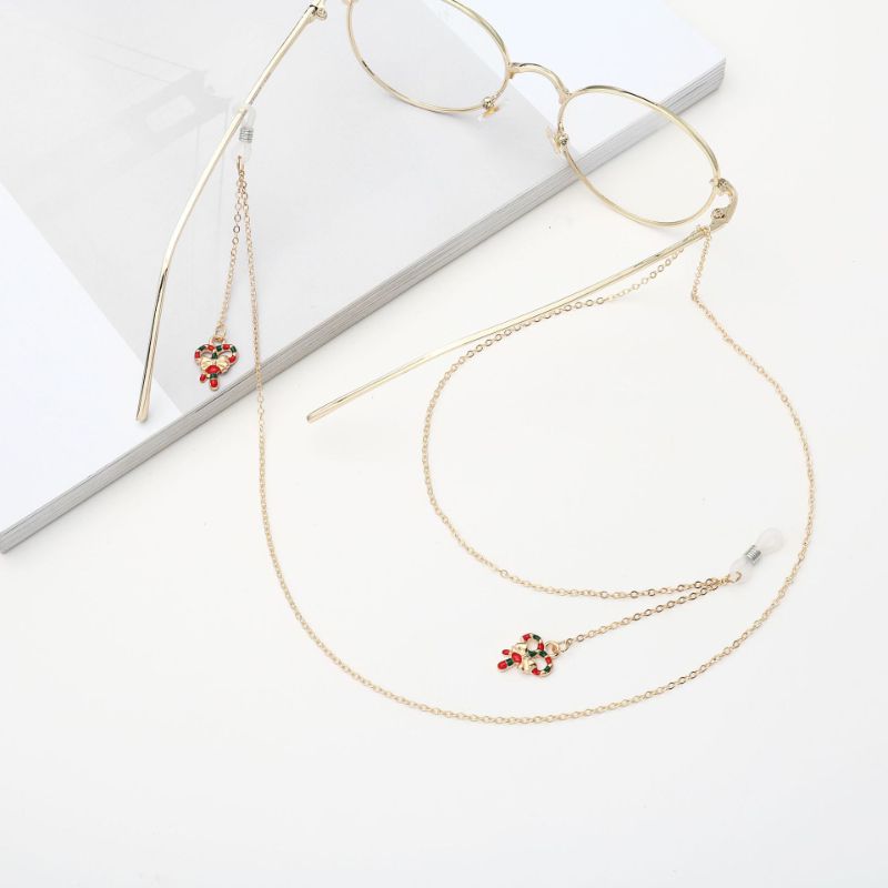 Gold-colored metal non-slip chain, with Christmas bow, for glasses and masks GA036