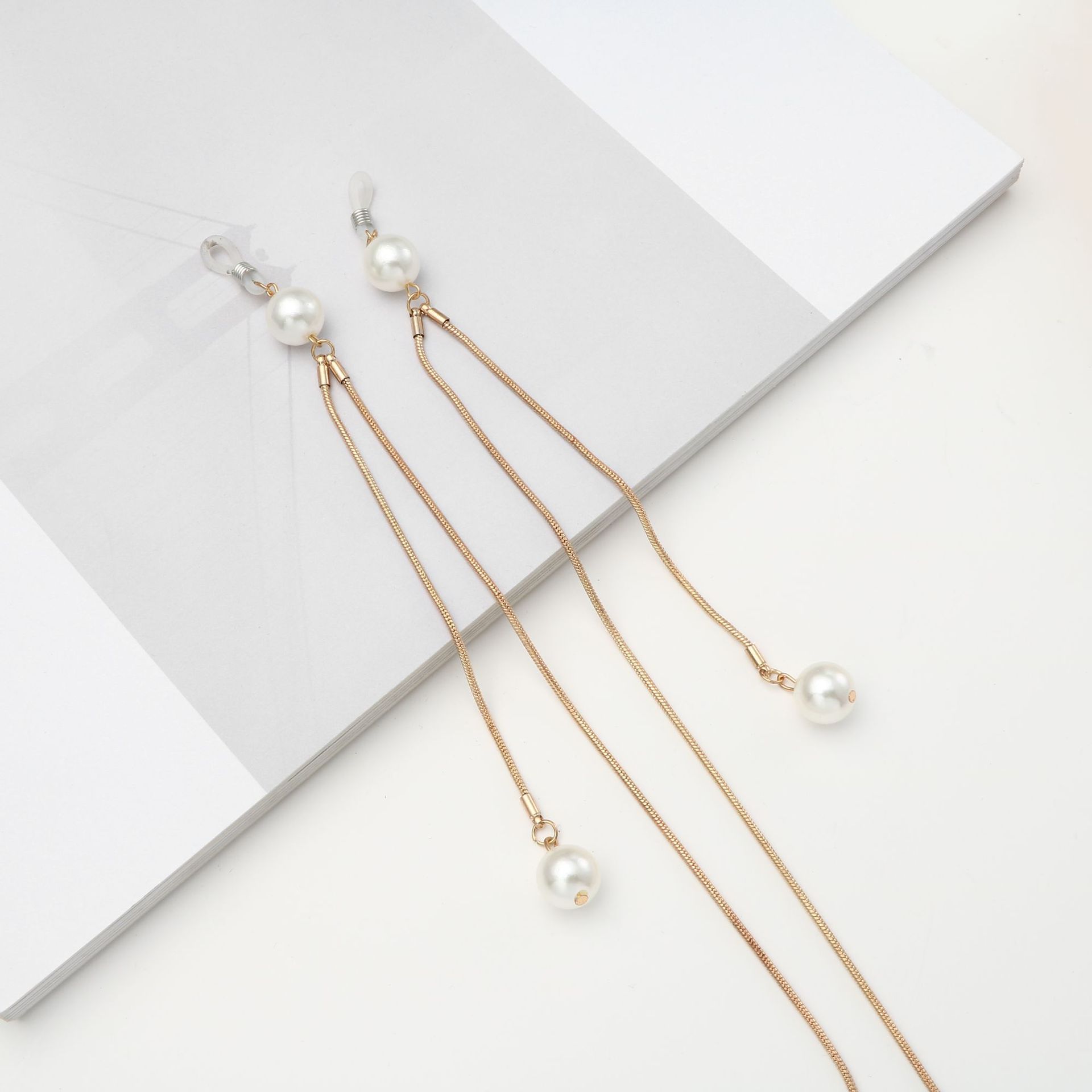 Gold-colored metal non-slip chain, with pendant with pearl, for glasses and masks GA037