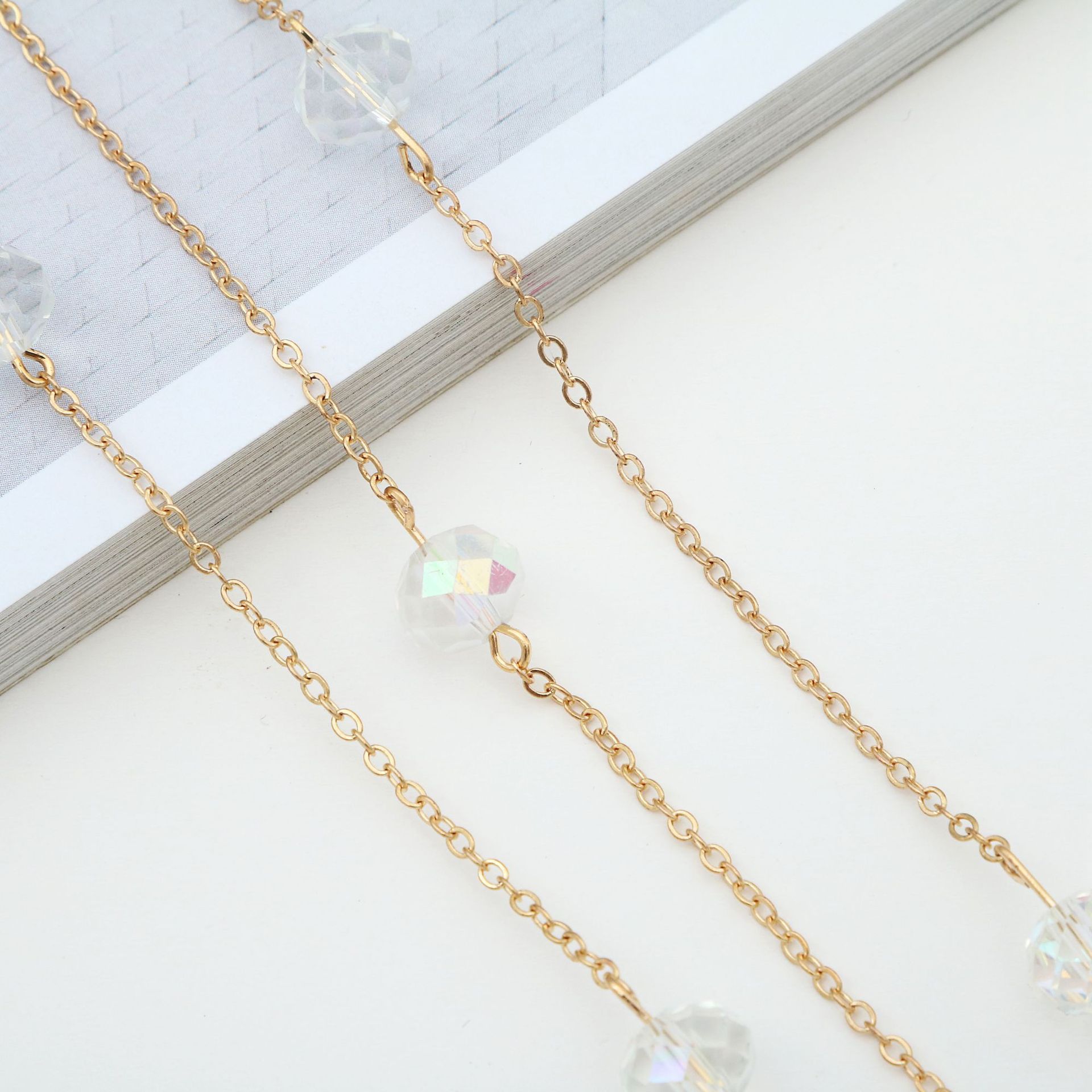 Metal non-slip chain, with crystal beads, for glasses and masks GA073
