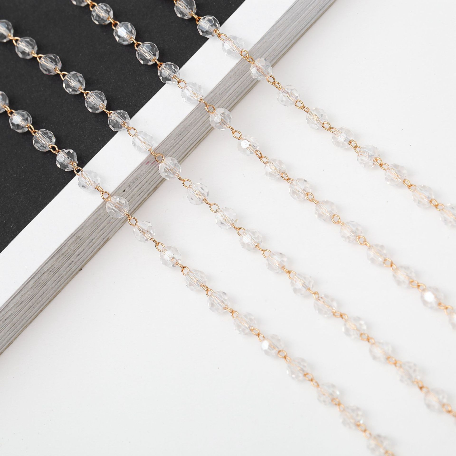 Metal non-slip chain, gold crystal bead, for glasses and masks GA087