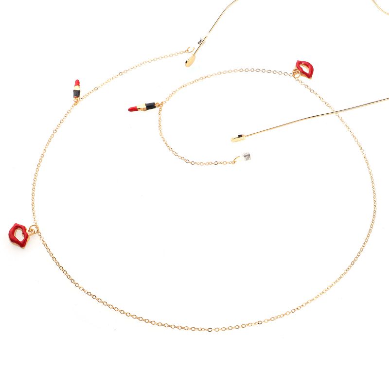 Gold-colored metal non-slip chain, with lipstick, for glasses and masks GL004