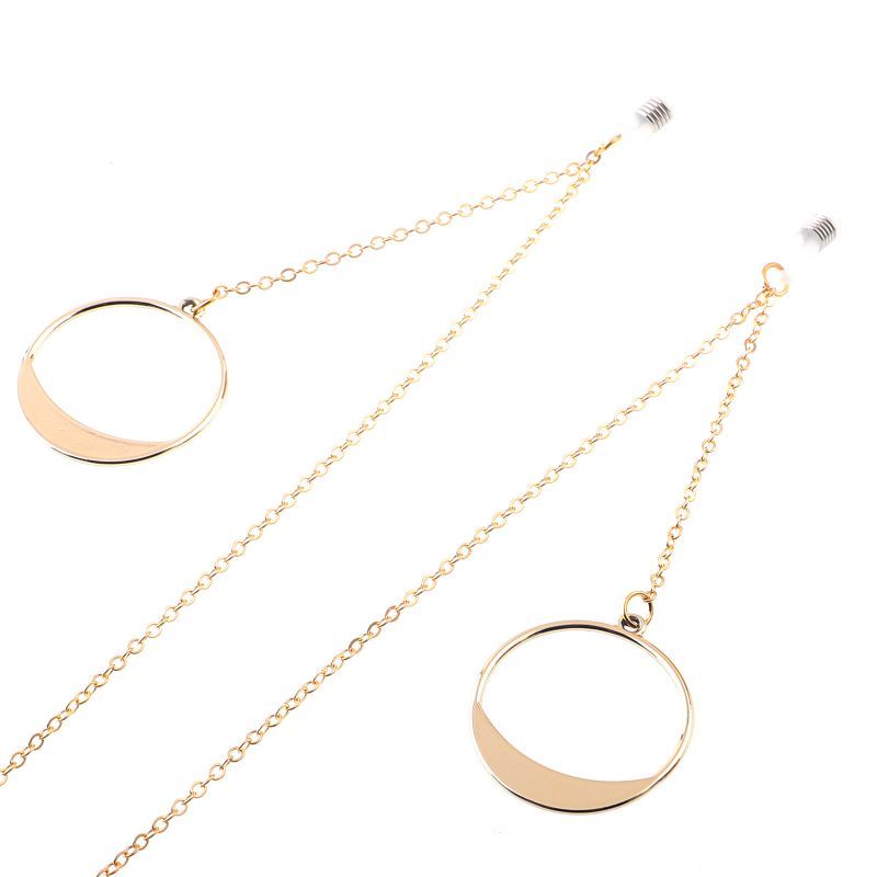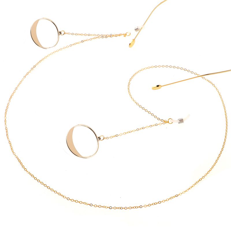 Gold-colored metal non-slip chain, with circle pendant, for glasses and masks GL005