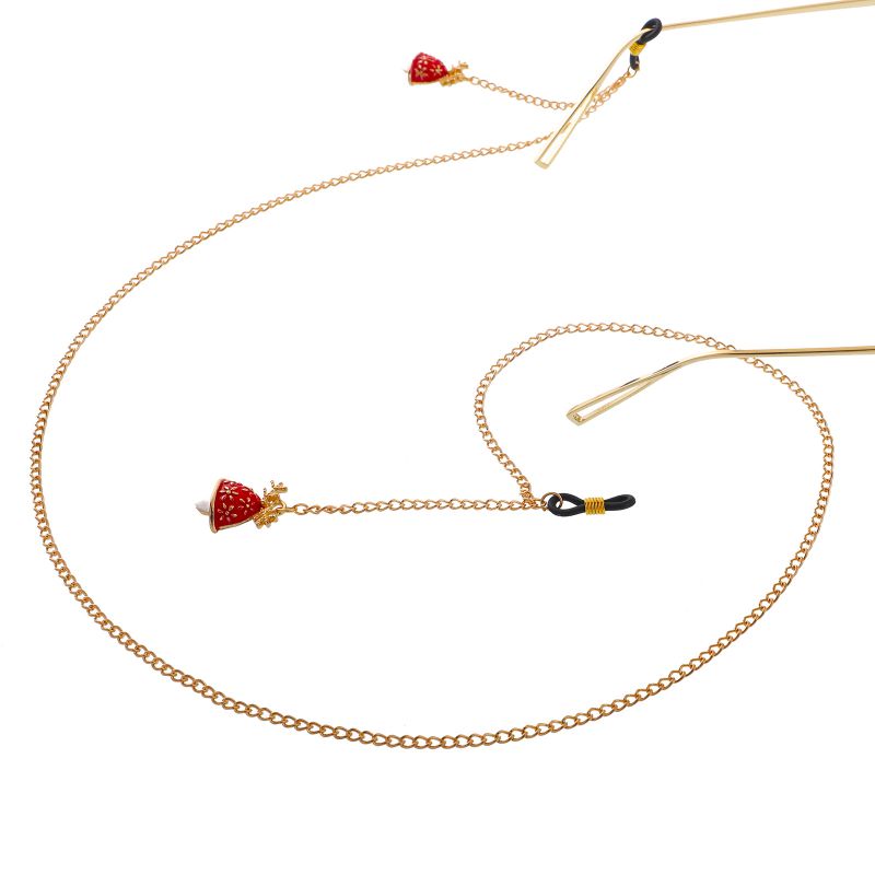 Gold-colored metal non-slip chain, with Christmas bell pendant, for glasses and masks GL032