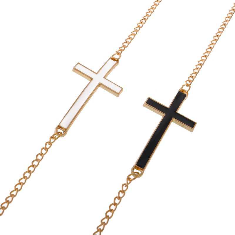 Gold-colored metal non-slip chain, with black and white cross, for glasses and masks GL040