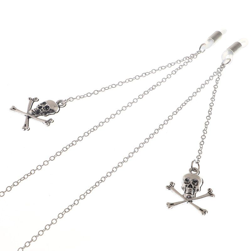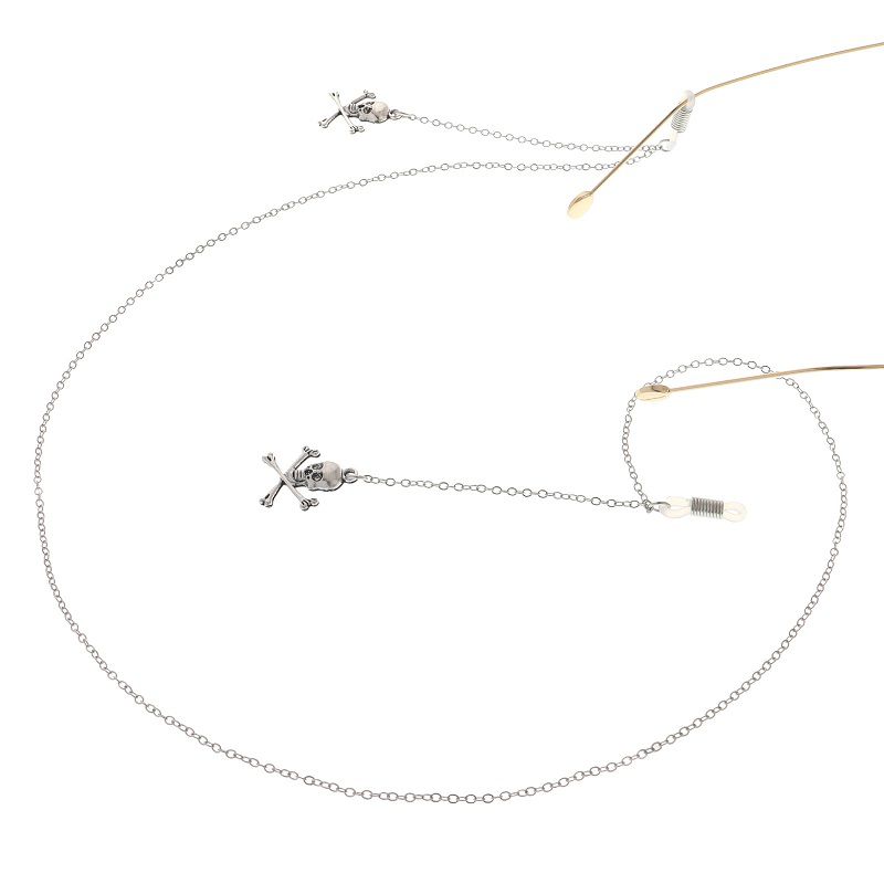 Silver-colored metal non-slip chain, with skull and cross, for glasses and masks GL058