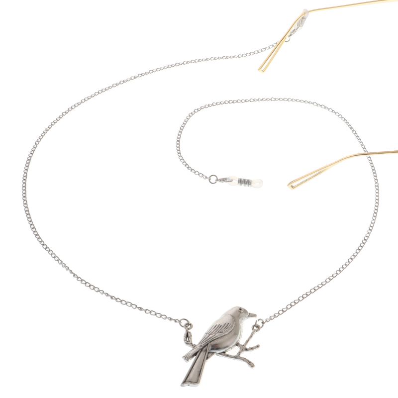 Silver-colored metal non-slip chain, with a bird on a branch, for glasses and masks GL066