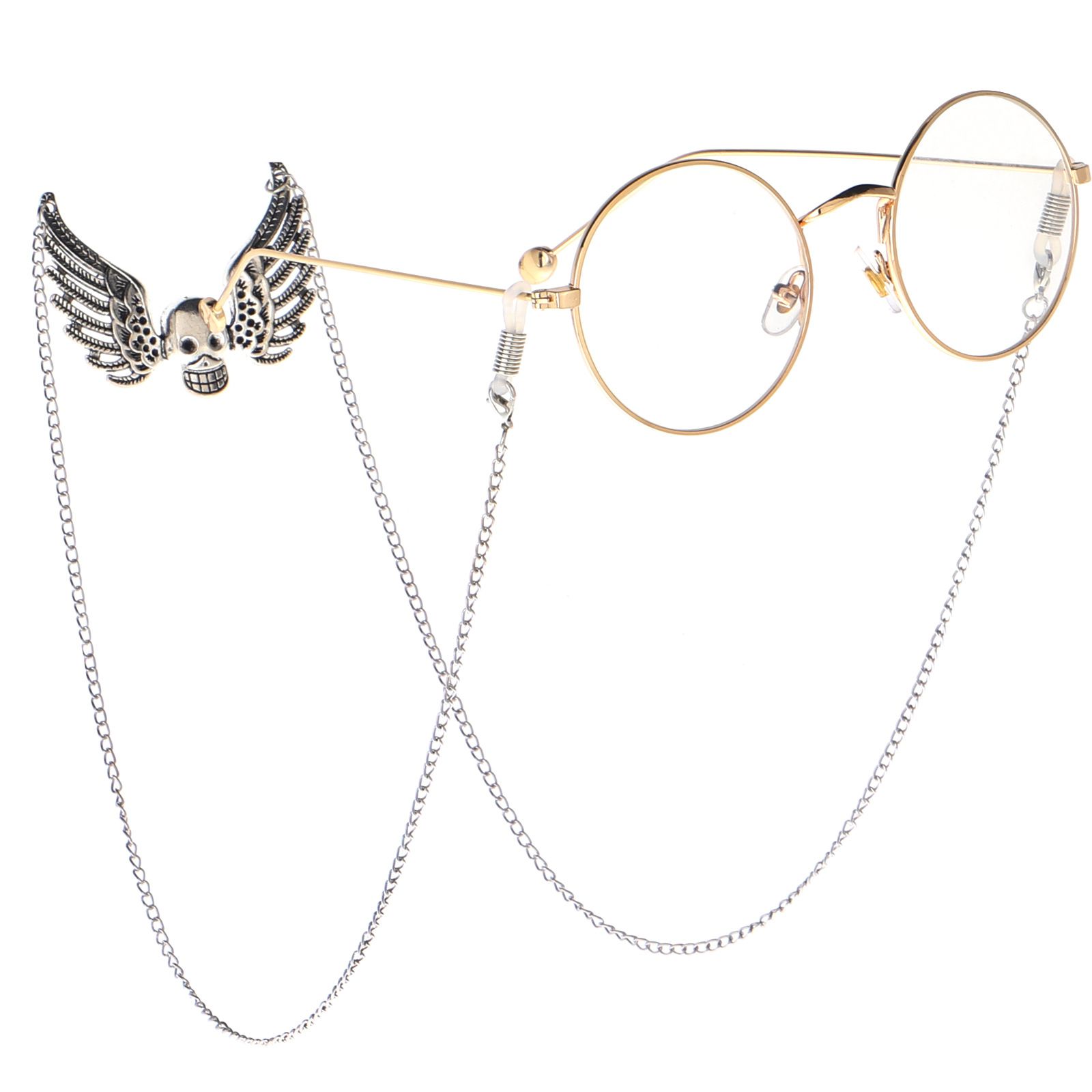 Silver-colored metal non-slip chain, with punk angel skull, for glasses and masks GL067