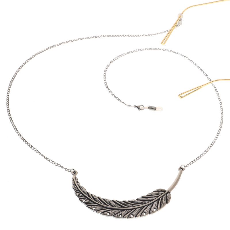 Silver-colored metal non-slip chain, with a feather, for glasses and masks GL070