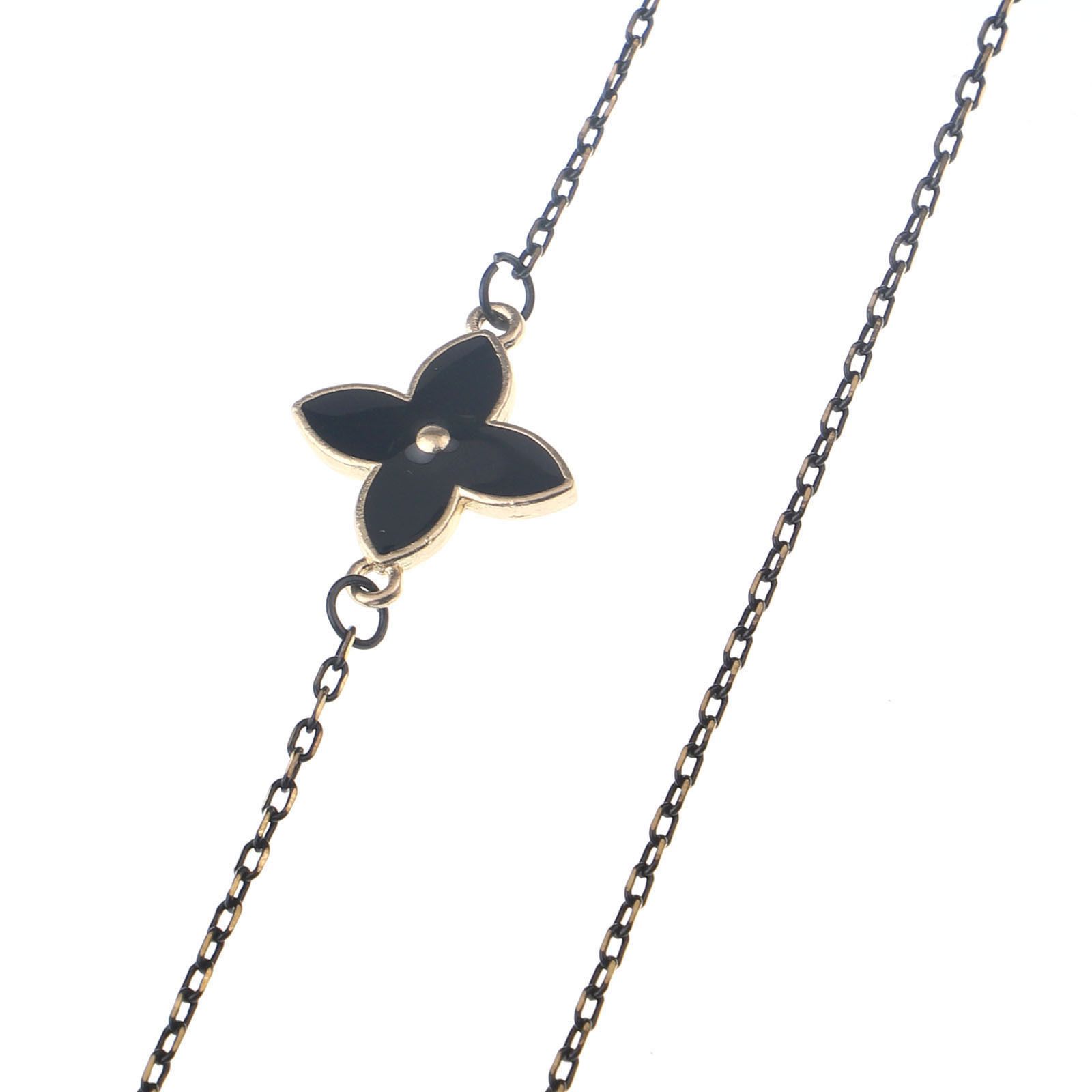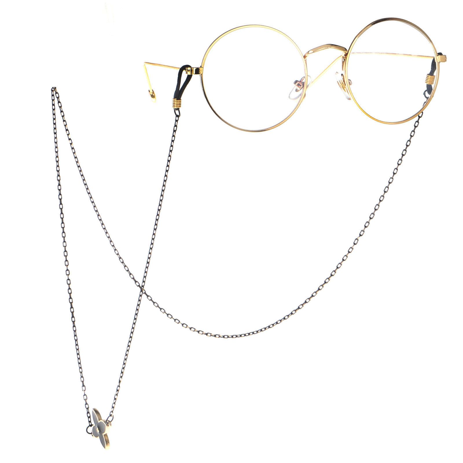 Black-colored metal non-slip chain, with flower grass, for glasses and masks GL091