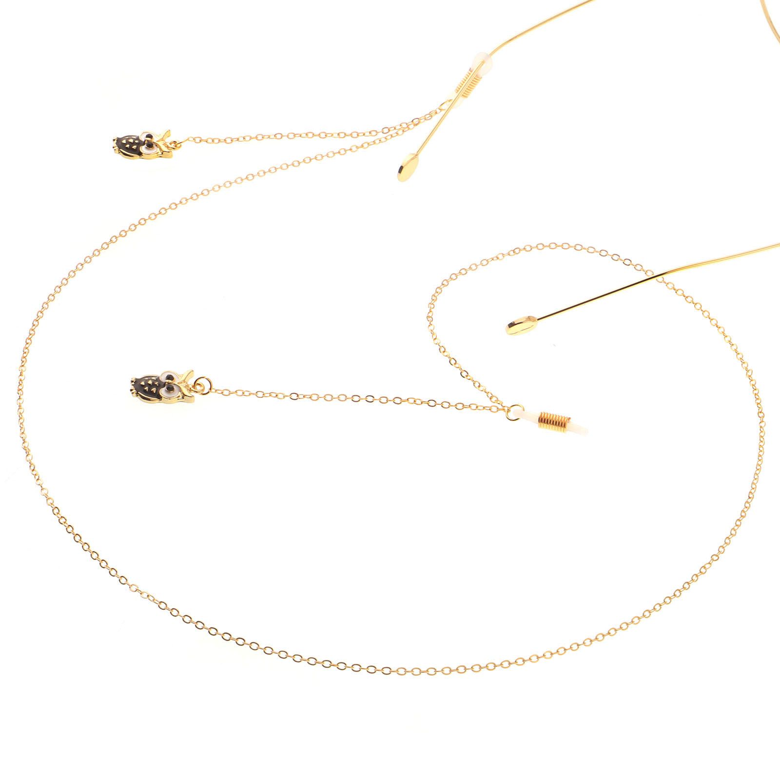 Gold-colored metal non-slip chain, with pendant owl, for glasses and masks GL096