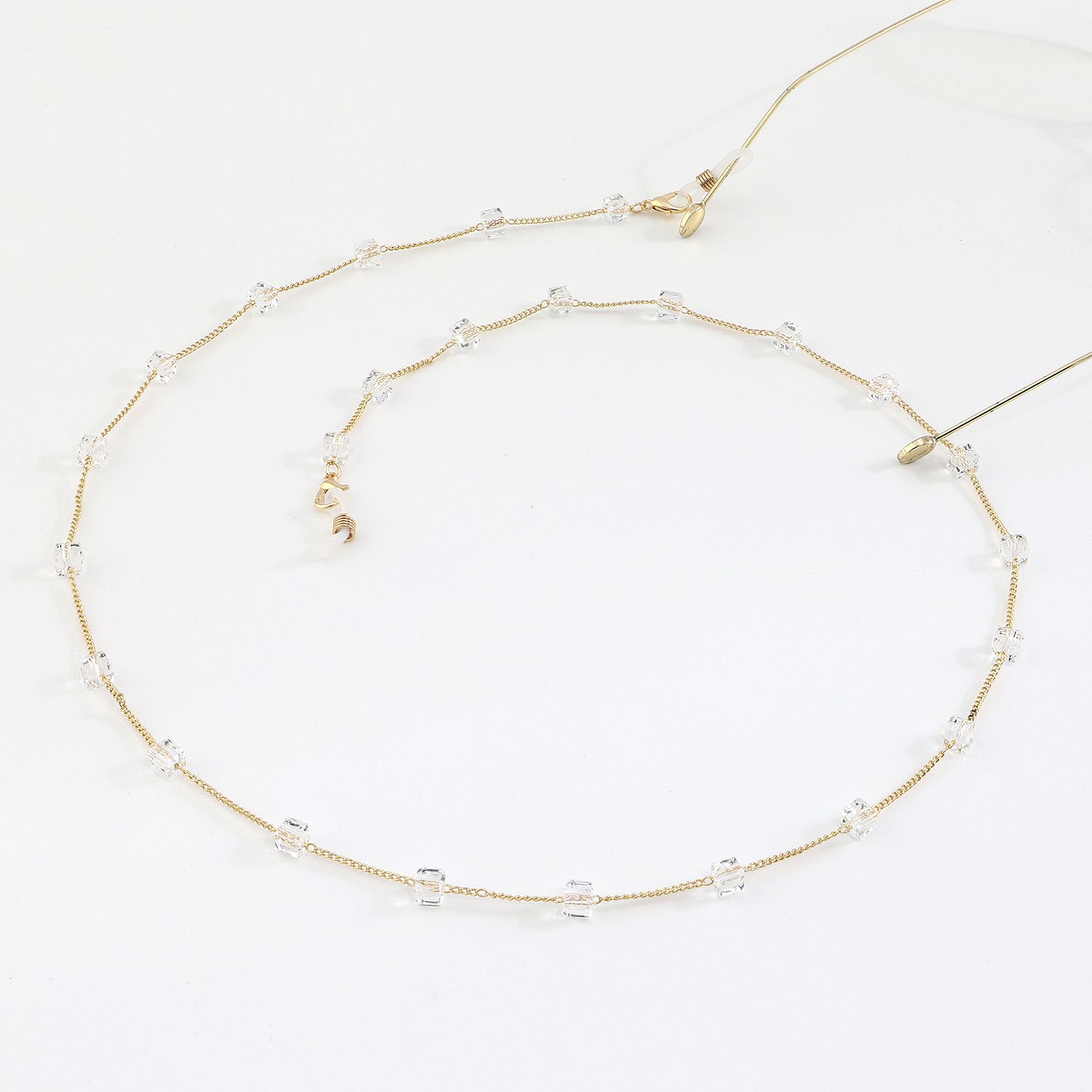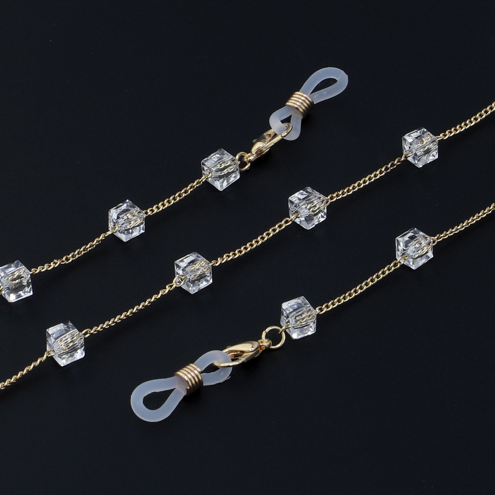 Metal non-slip chain gold, with large square crystal, for glasses and masks GL1002