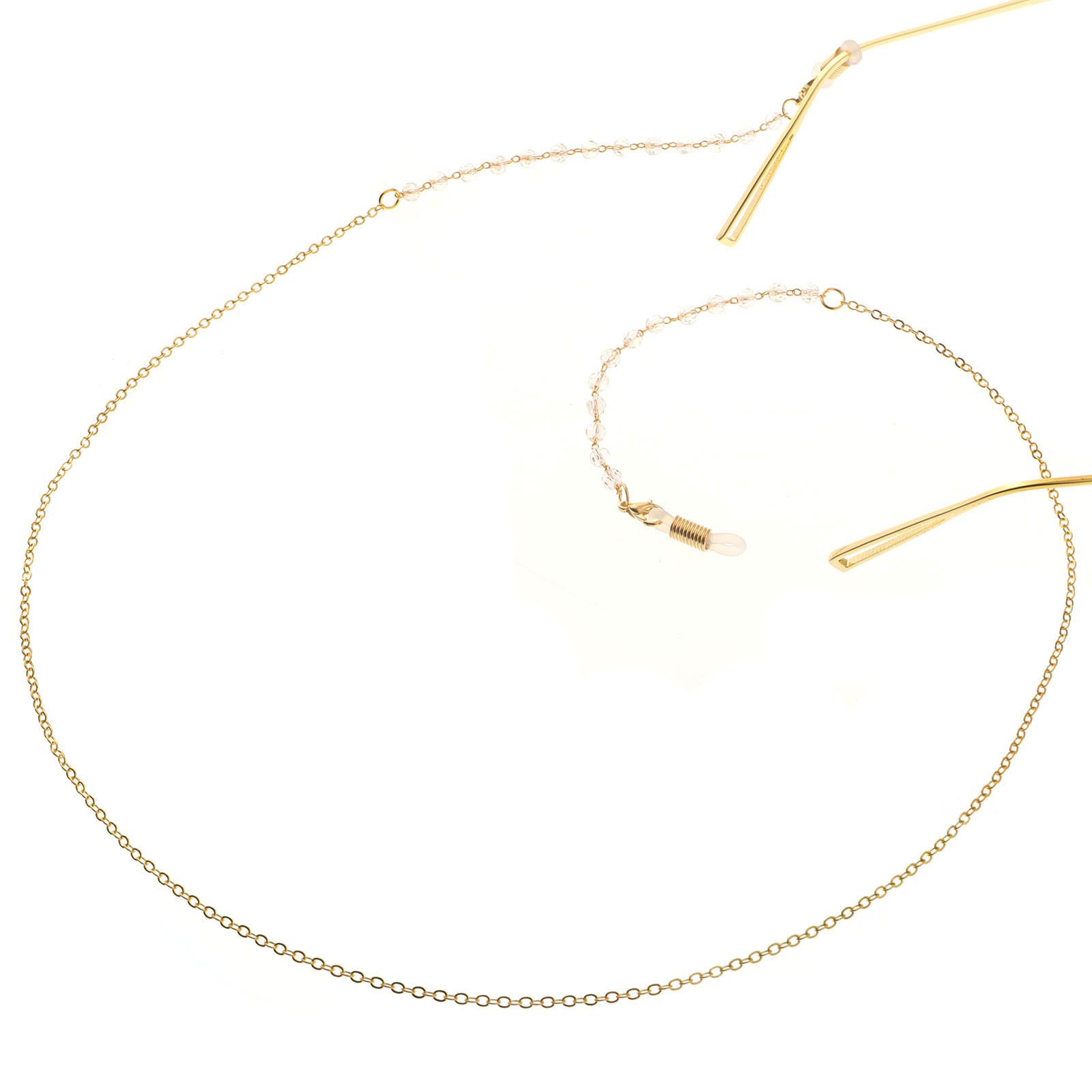 Gold-colored metal non-slip chain, with transparent crystal, for glasses and masks GL102
