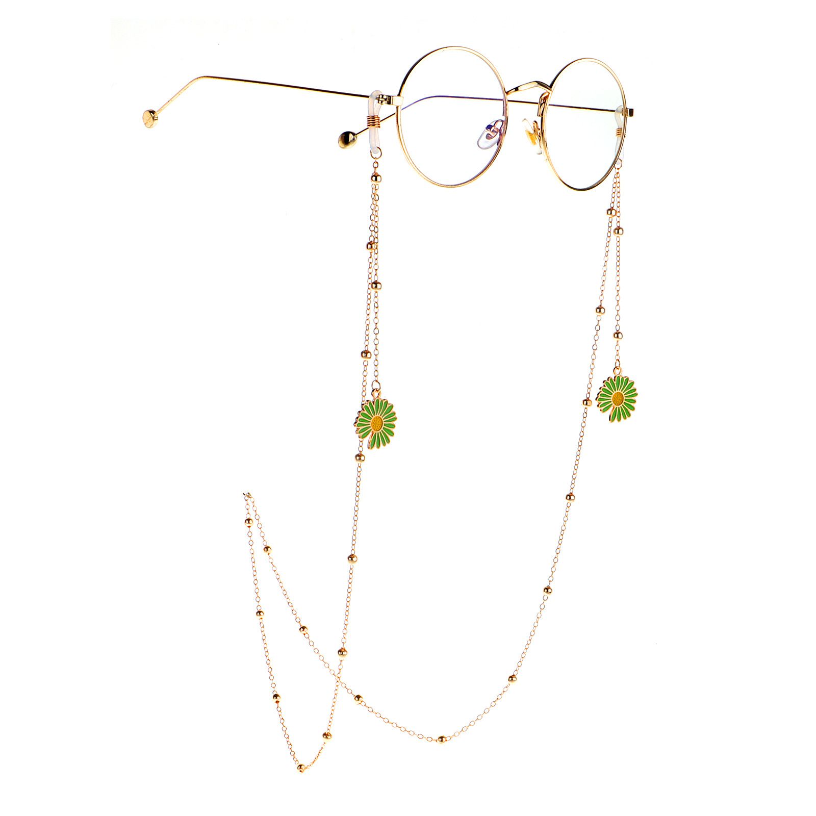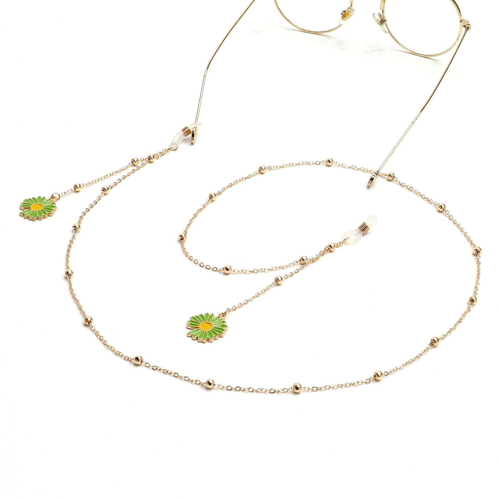 Gold-colored metal non-slip chain, pendant green daisy, for glasses and masks GL1035