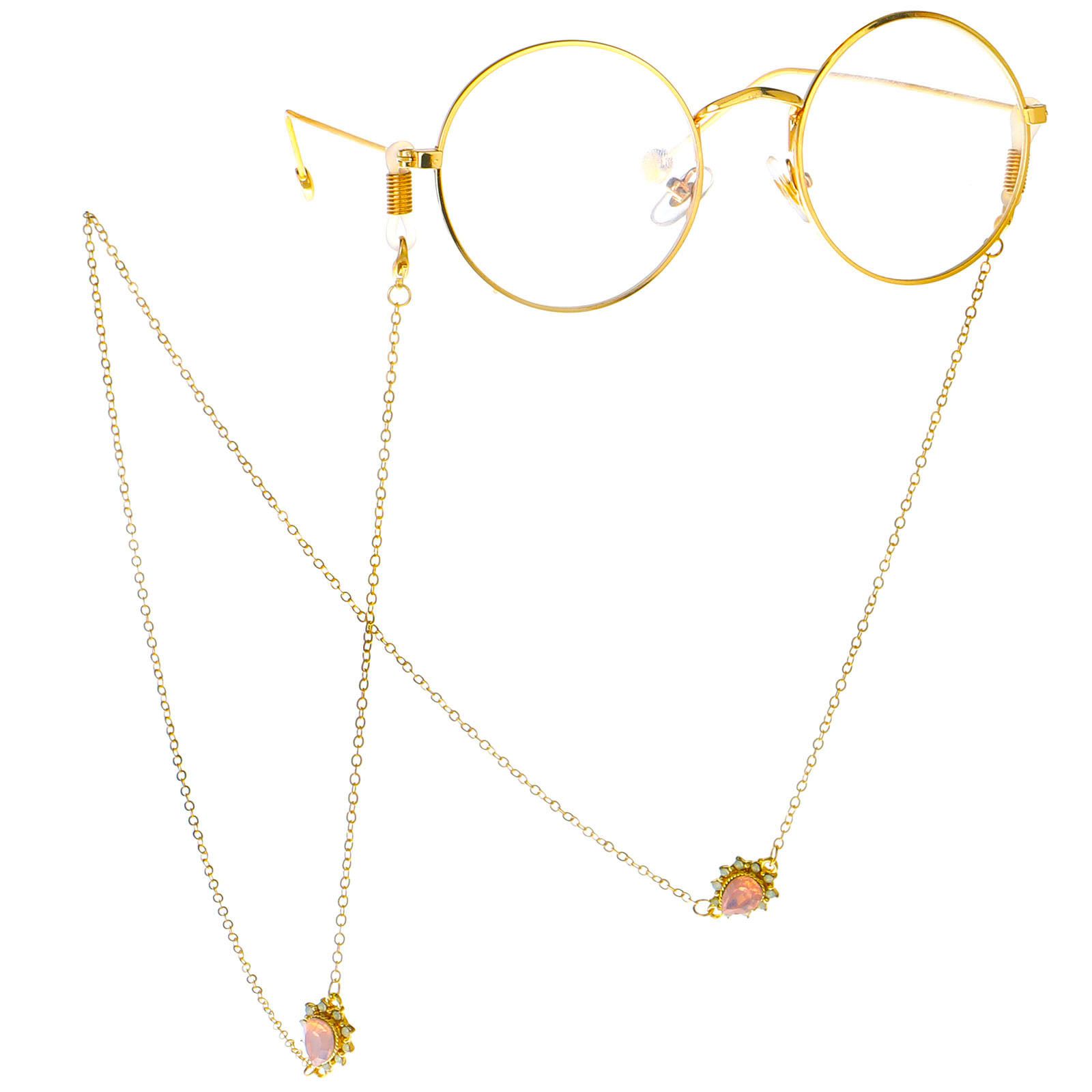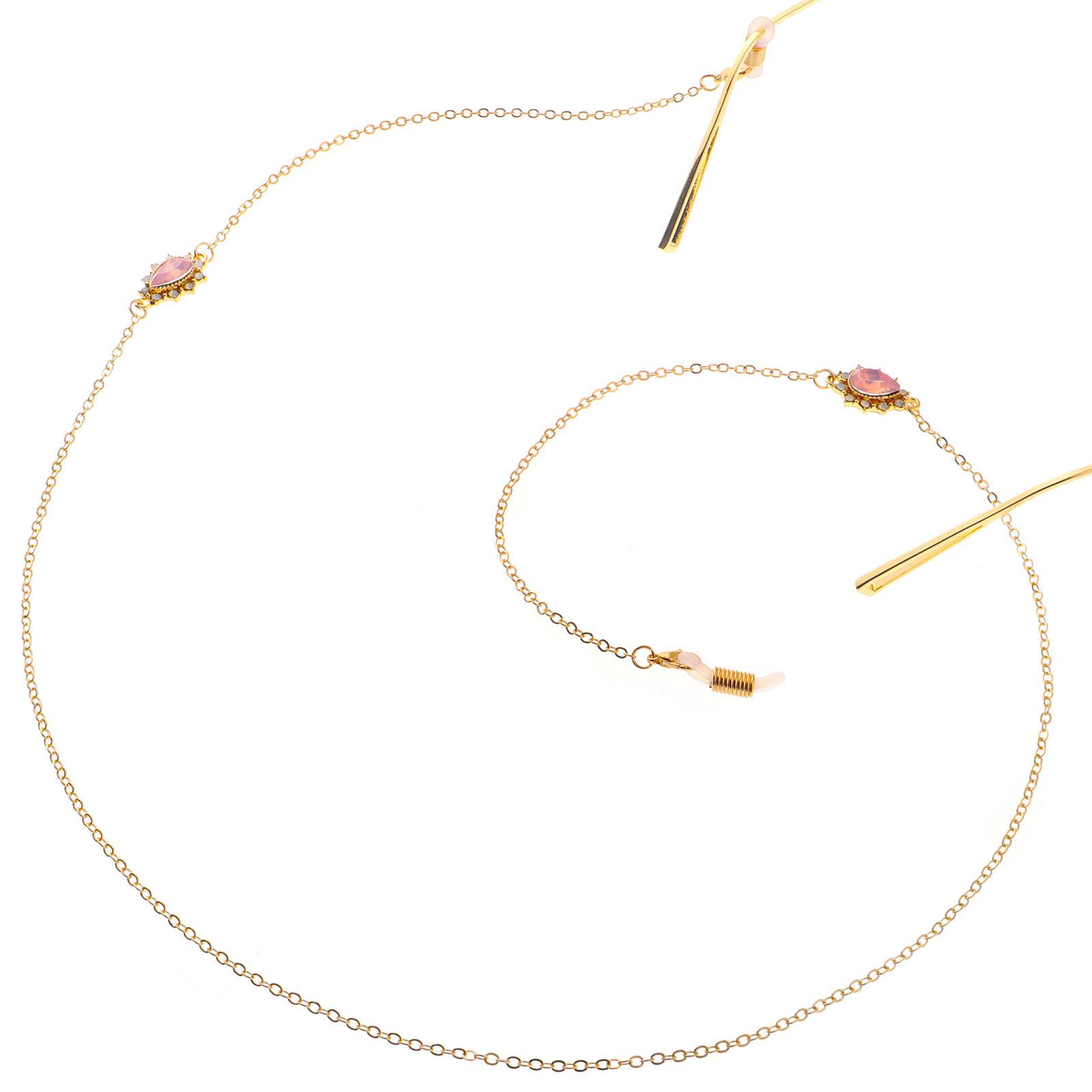 Gold-colored metal non-slip chain, with diamond water drop, for glasses and masks GL107