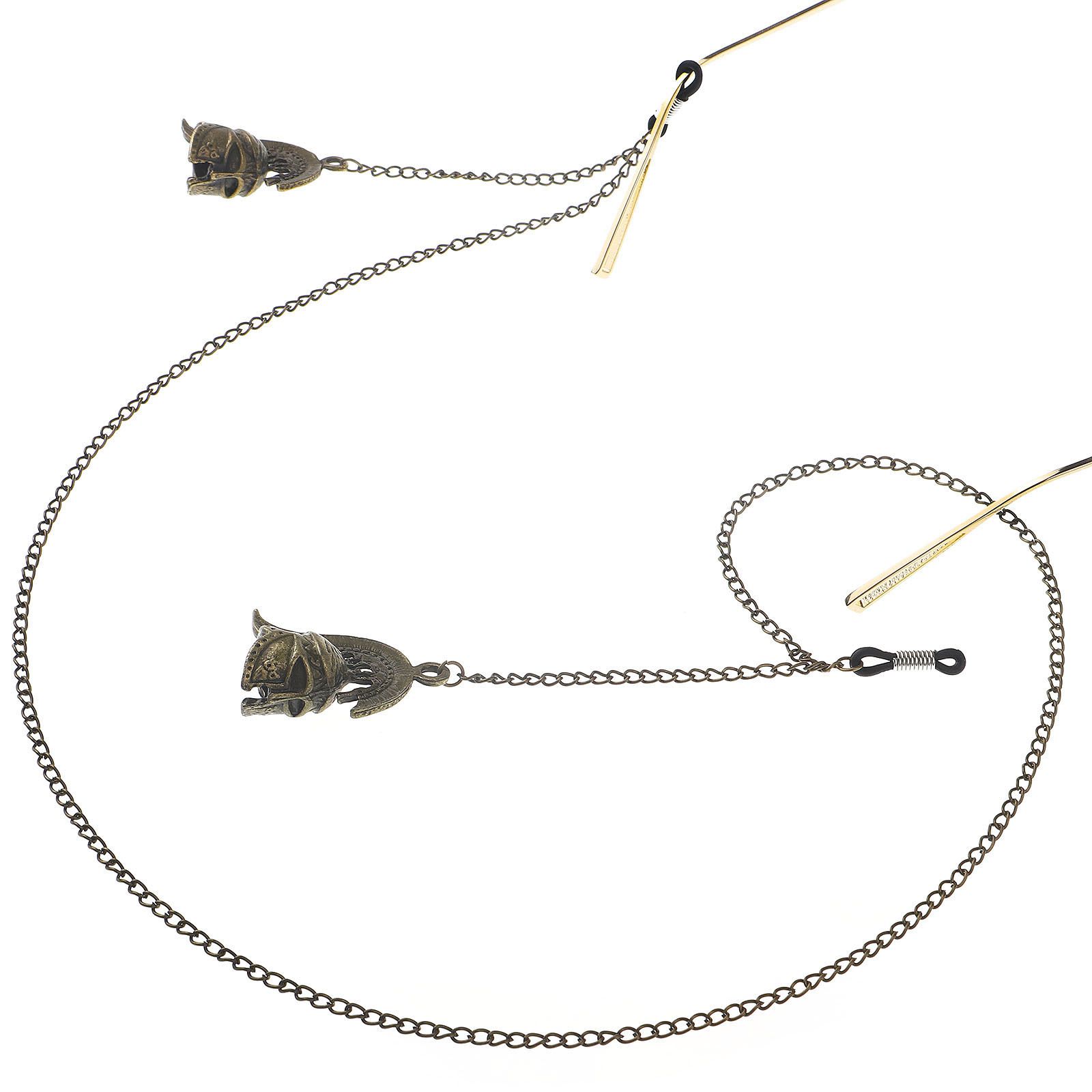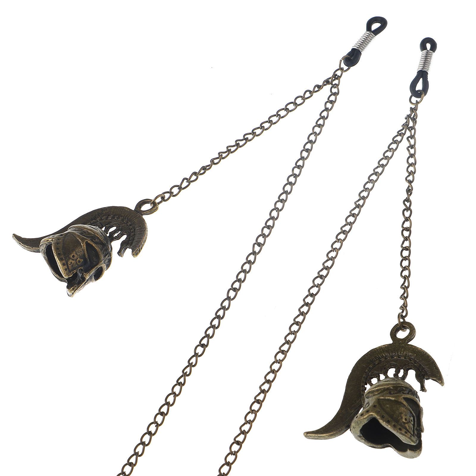Black-colored metal non-slip chain, with pendant bronze roman helmet, for glasses and masks GL115