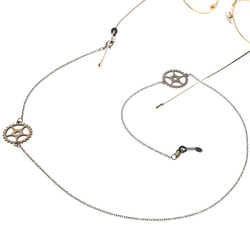 Bronze-colored metal non-slip chain, with a gear wheel, for glasses and masks GL119