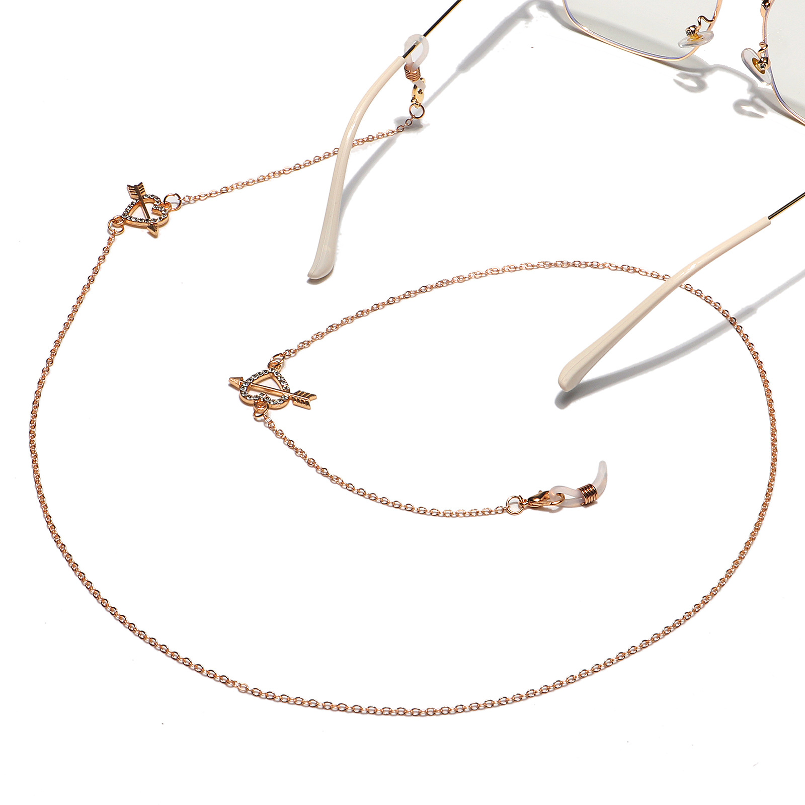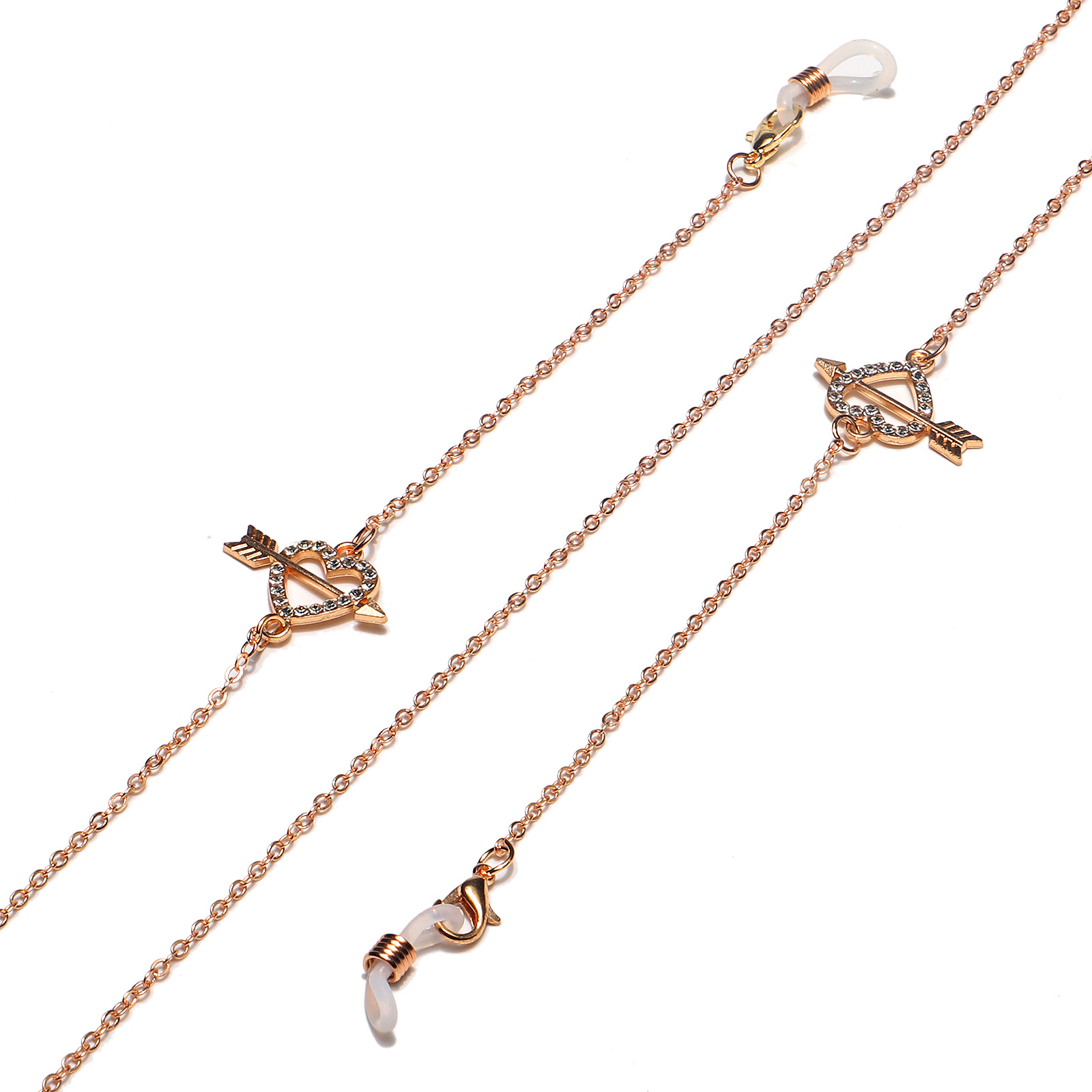 Golden glasses chain with rhinestone arrow through the heart GL1213