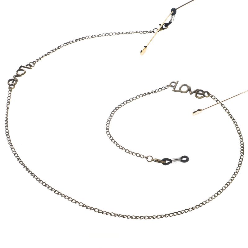 Bronze-colored metal non-slip chain, with the text LOVE, for glasses and masks GL123