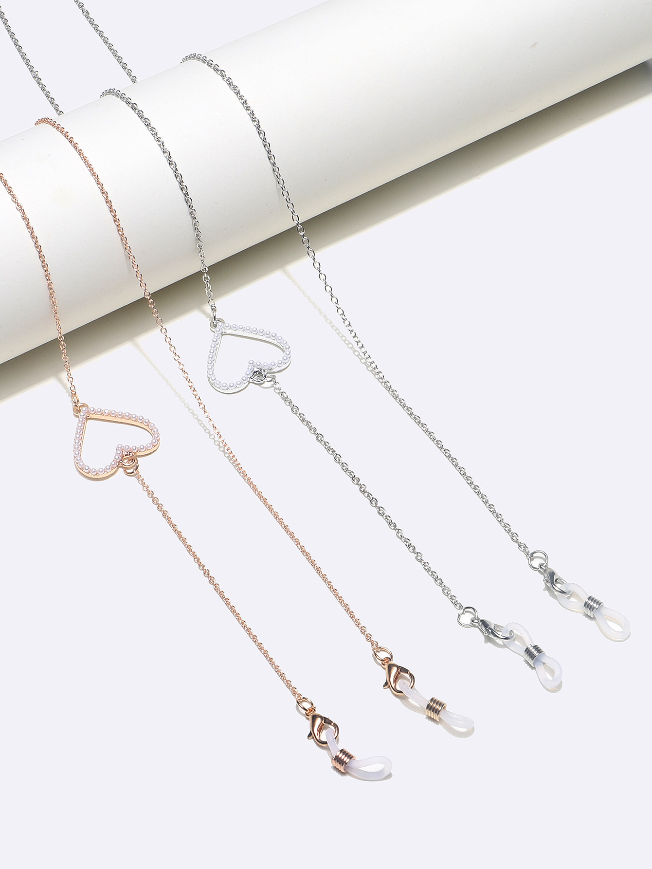 Metal glasses chain with hearts rhinestone GL1233