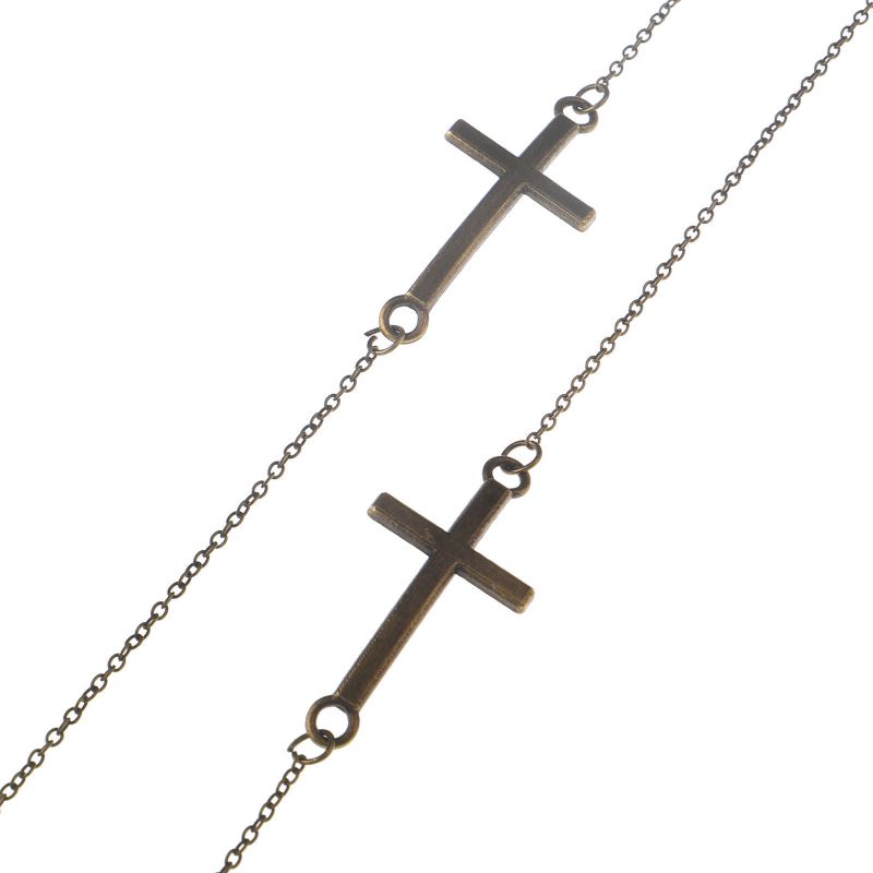 Bronze-colored metal non-slip chain, with a cross, for glasses and masks GL124