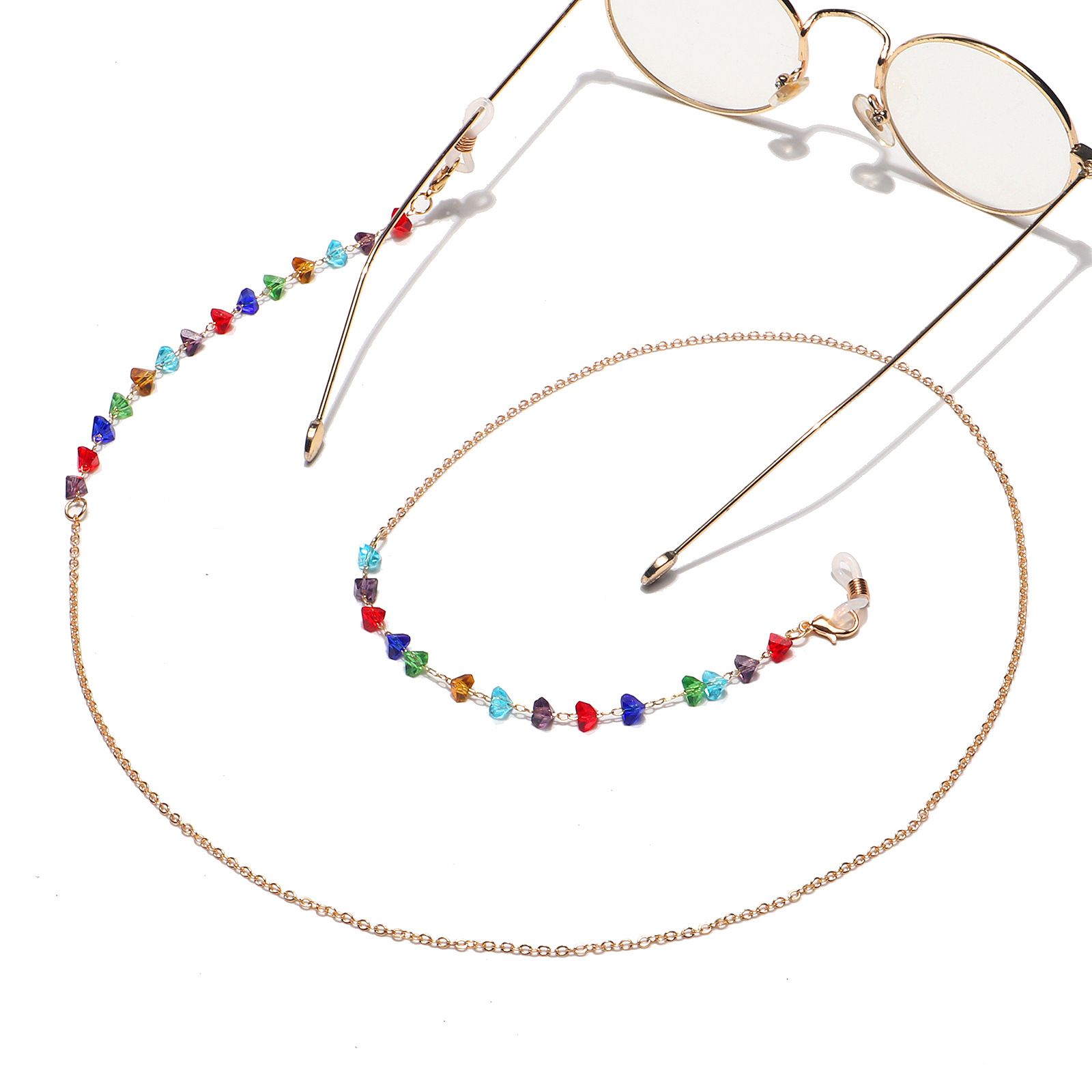 Gold-colored metal non-slip chain, with colorful crystal, for glasses and masks GL1298