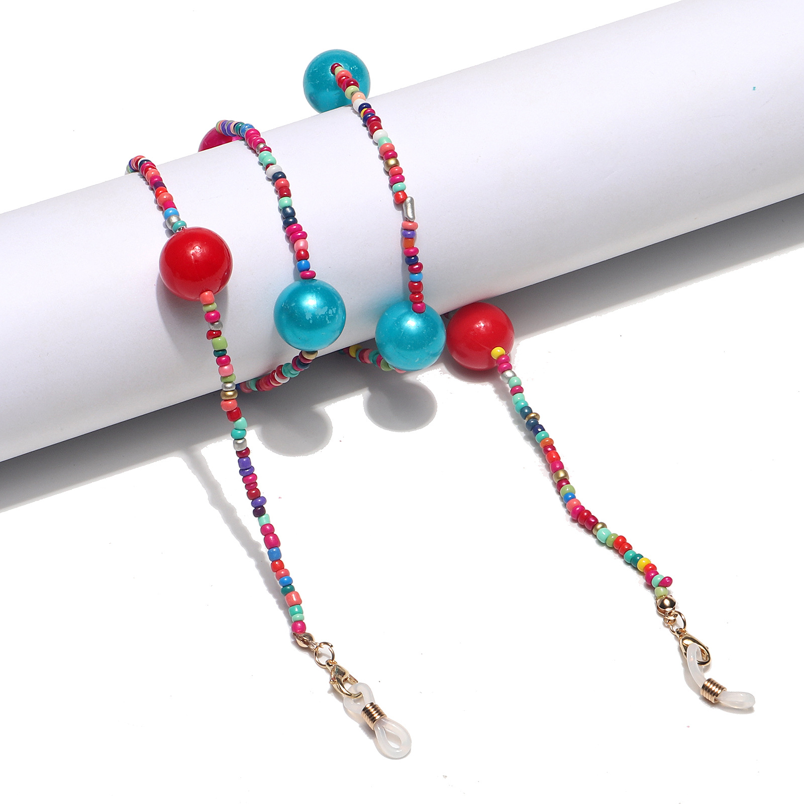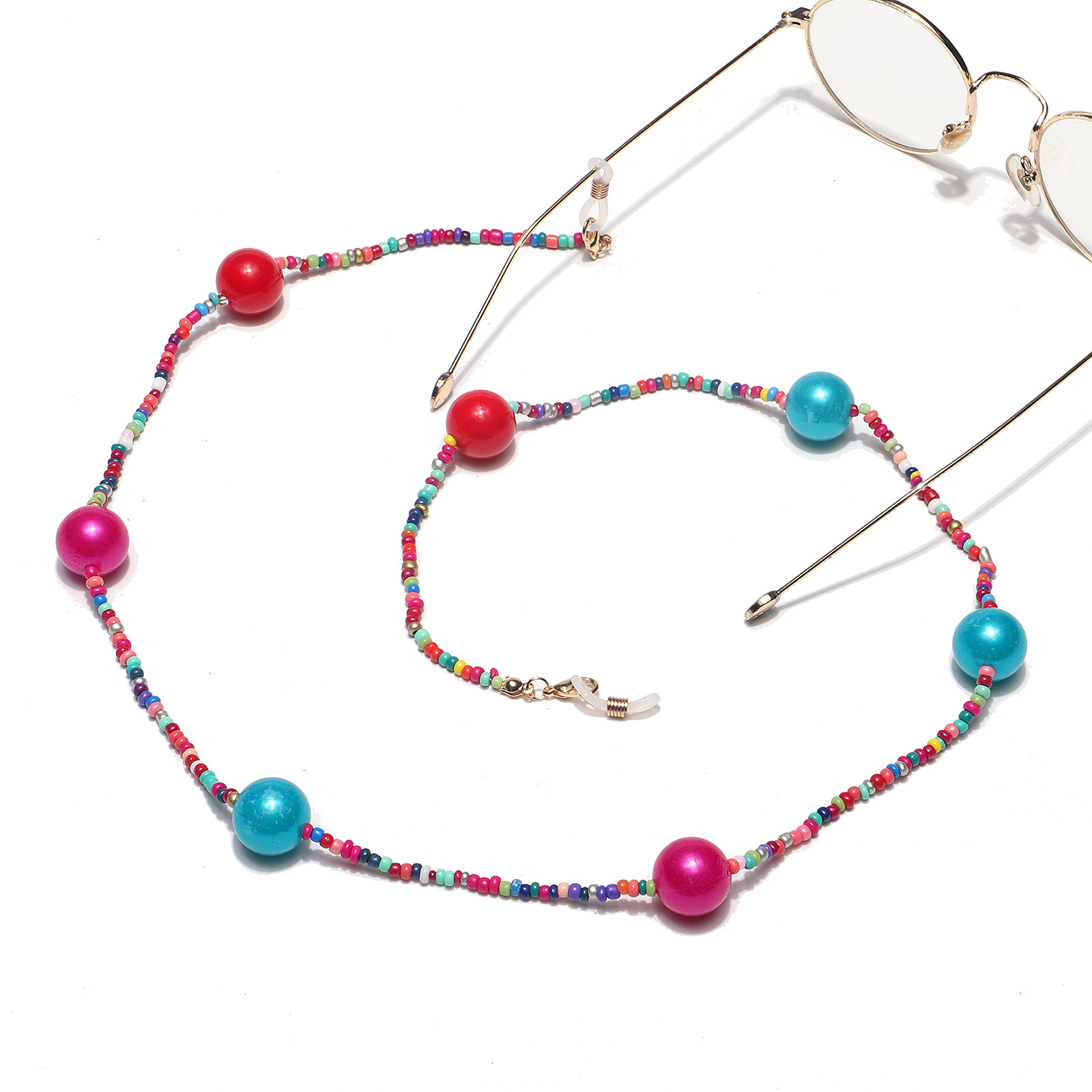 Fashion mixed color rice bead glasses chain with large beads GL1317