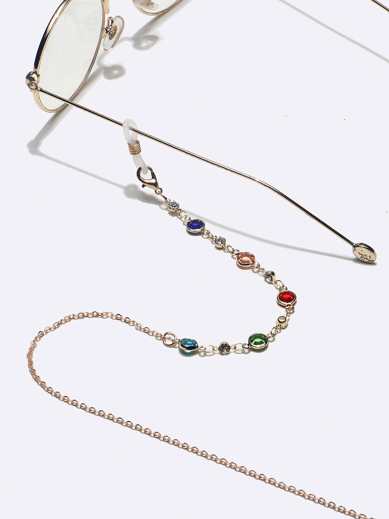 Stylish metal glasses chain with color rhinestone pearls GL1360