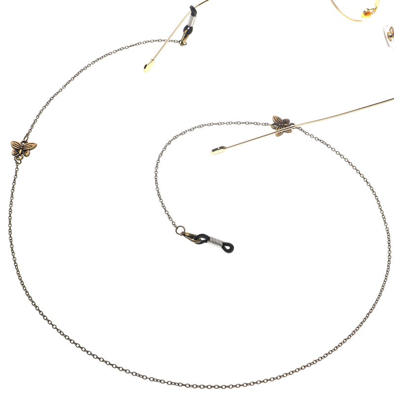 Bronze-colored metal non-slip chain, with a butterfly, for glasses and masks GL138