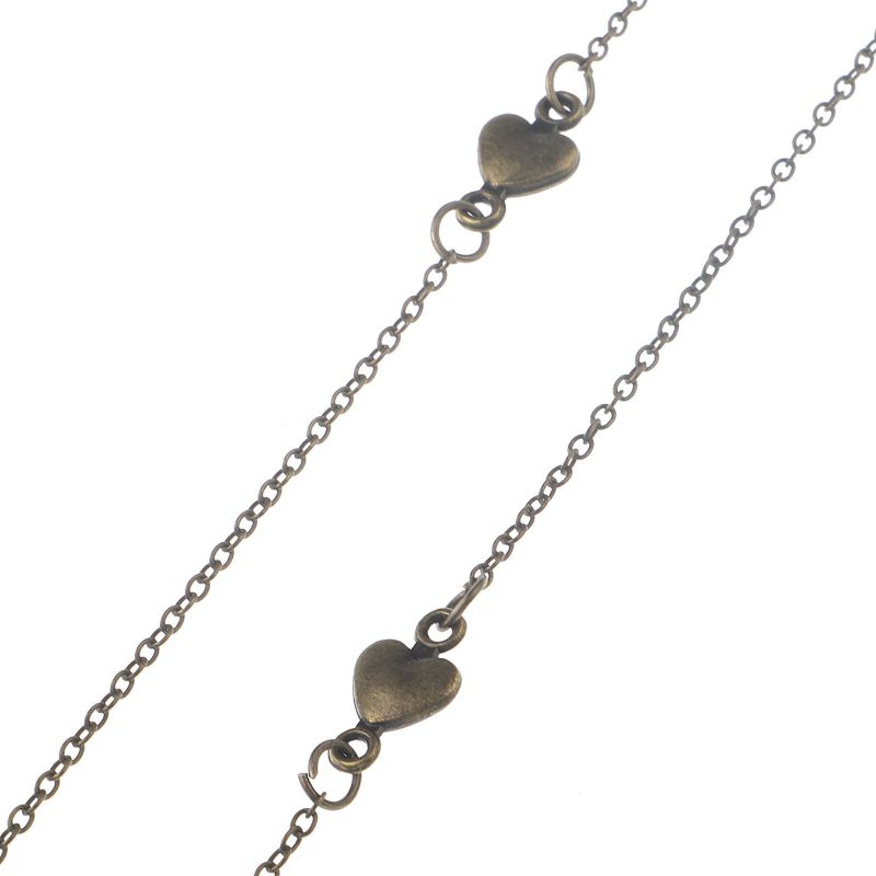 Bronze-colored metal non-slip chain, with a heart, for glasses and masks GL140